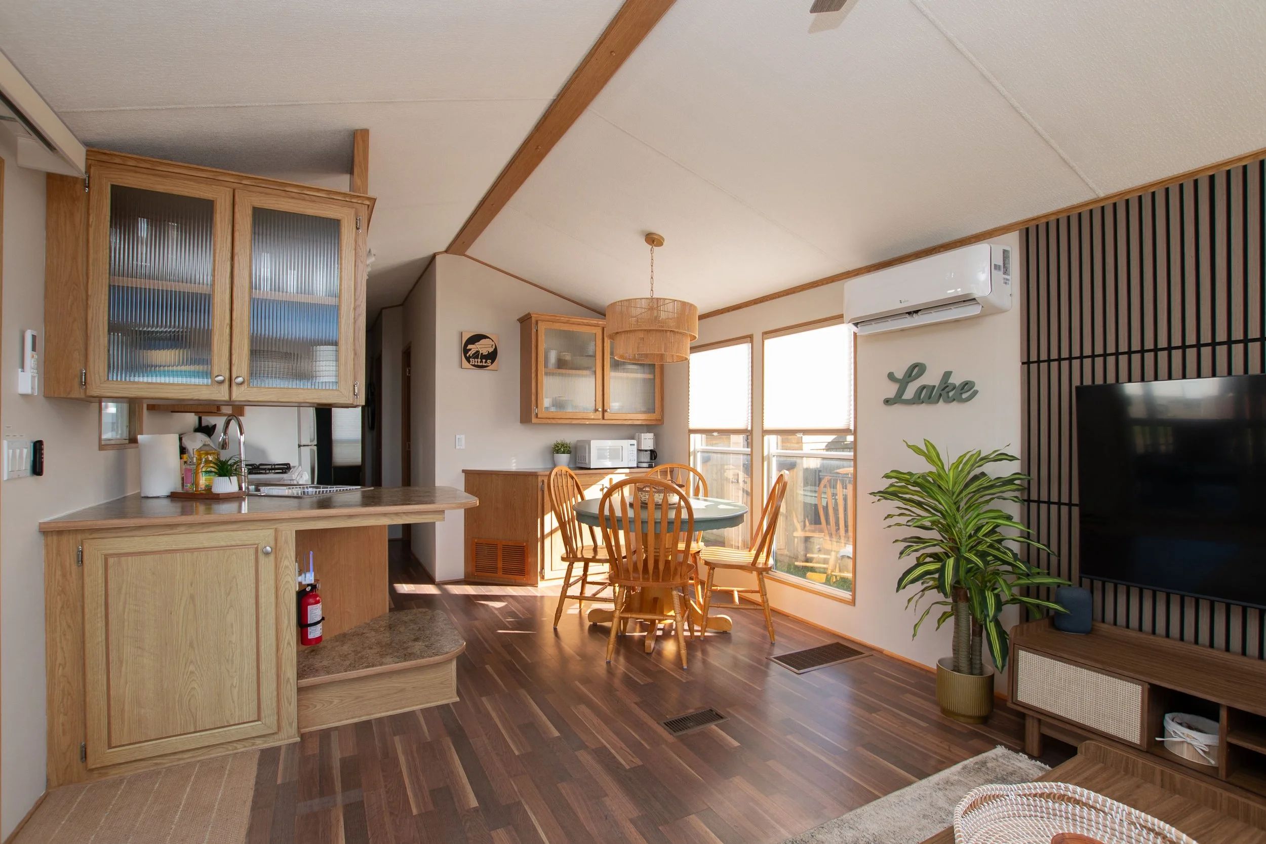 Welcome to Wyldewood Beach at Sherkston Shores — retro-chic styled cottage just steps from the beach. Call this charming retreat home after a fun-filled day at one of the resort’s two private beaches, or spend the day at the Funplex with waterpark access (additional cost). The cottage sleeps up to 6 guests with a double bunk in the second bedroom and a comfortable pullout couch in the living area. Evenings are made for summer meals from the BBQ and yard bonfires — we provide a s’mores kit for roasting treats with the family. Book your family getaway with us and enjoy seaside relaxation and resort fun.